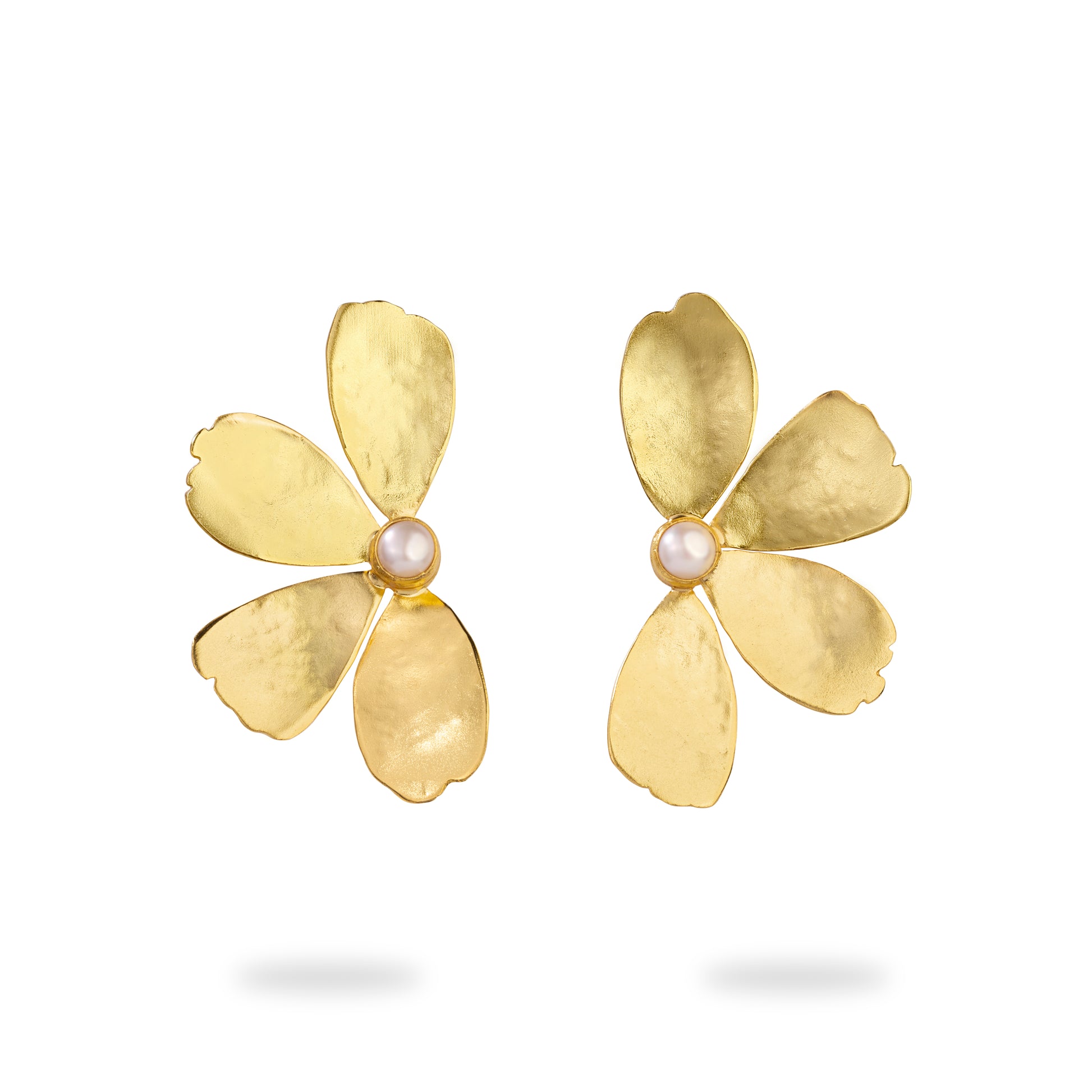 Celebrate effortless elegance with our Golden Blossom Earrings, designed to capture the beauty of nature in full bloom. Crafted with delicately hammered golden petals, each earring features a luminous pearl at its heart — a timeless symbol of purity and grace.