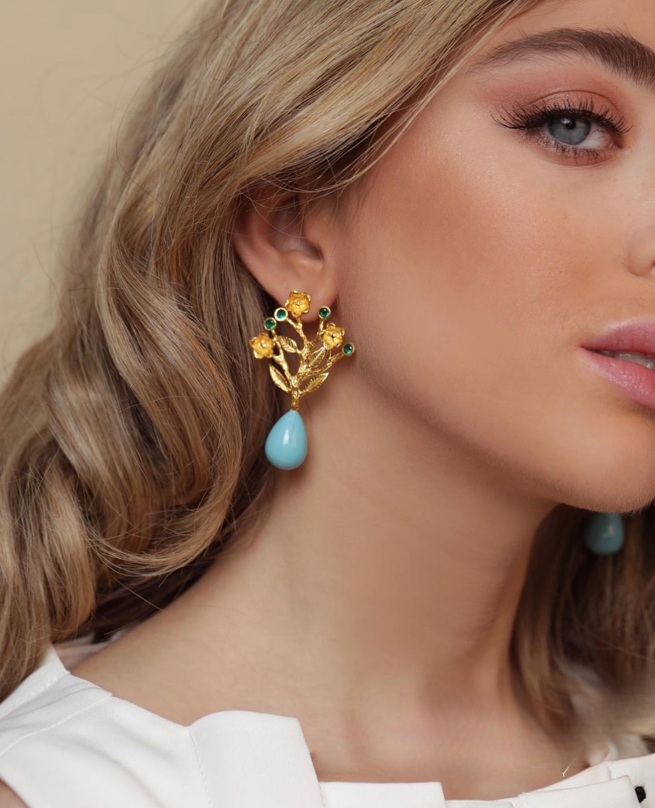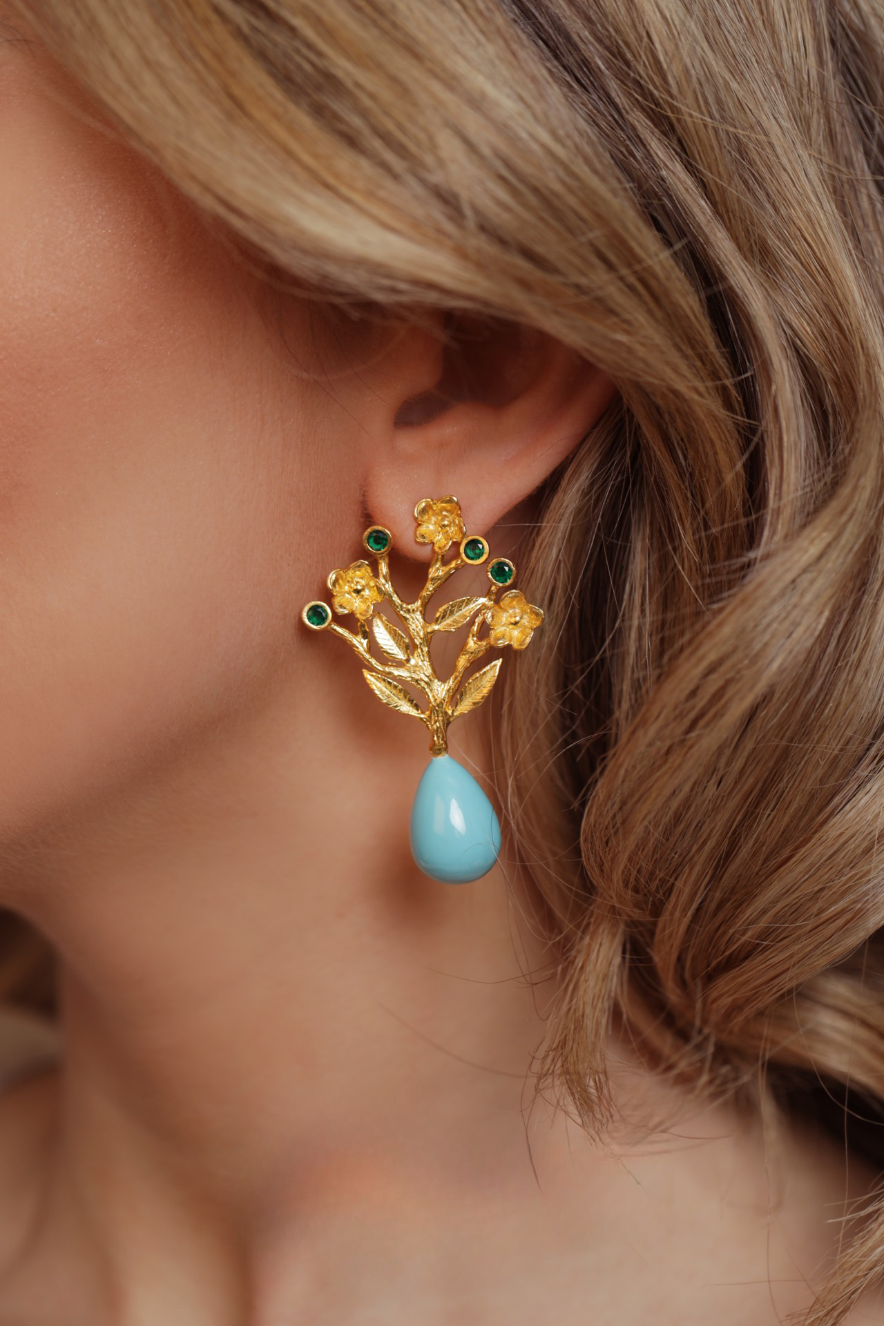 Handmade gold plated earrings with Turquoise